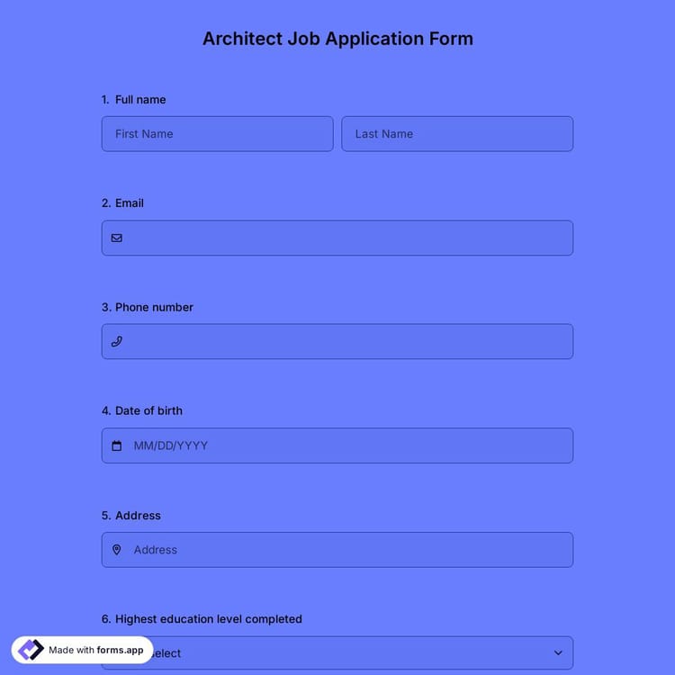 Whether you are creating a job application form or a membership registration form, forms.app offers you premium-quality templates for free. These application form templates come with common questions or form fields you would probably like to include in your form. Naturally, this will save you time and help you create better forms and surveys in a shorter time. So, choose one of our free form samples to create professional online forms today.