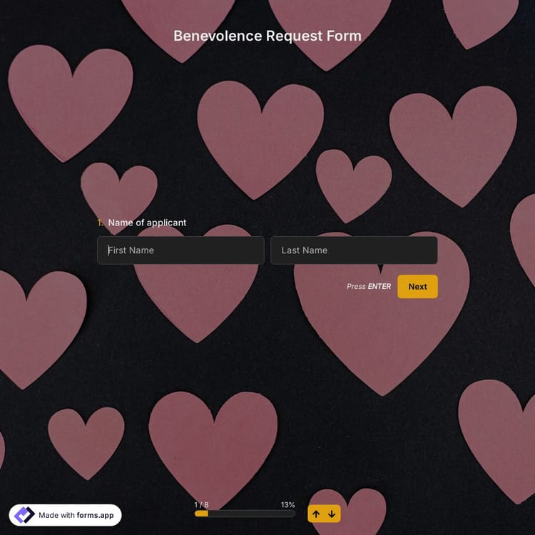 View this benevolence request form and click on "use template" after making sure this is what you are looking for.