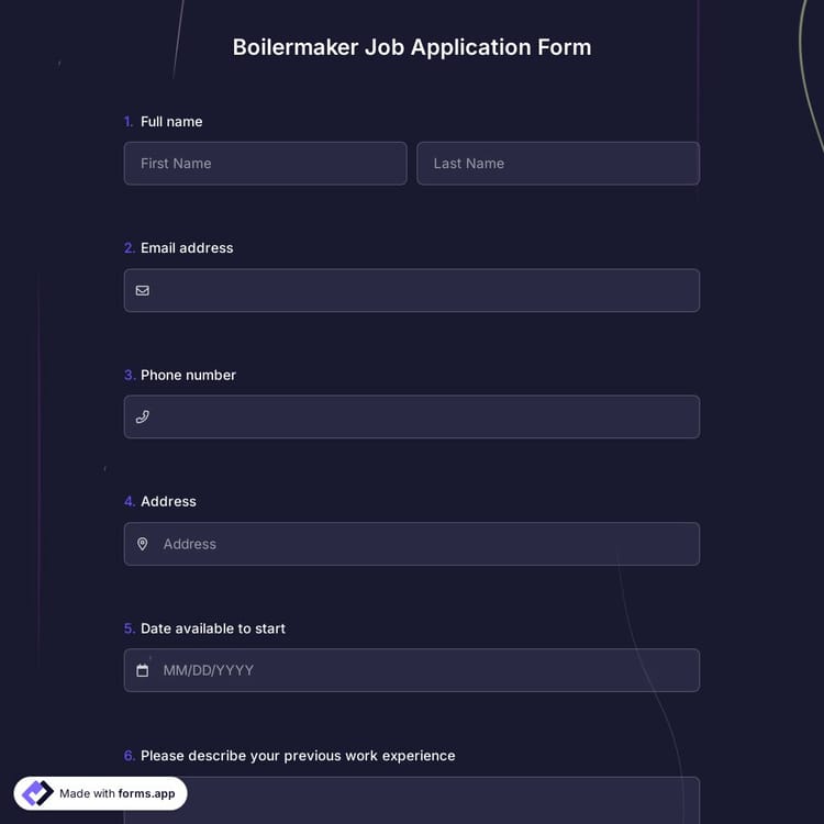 This boilermaker job application form is free and customizable