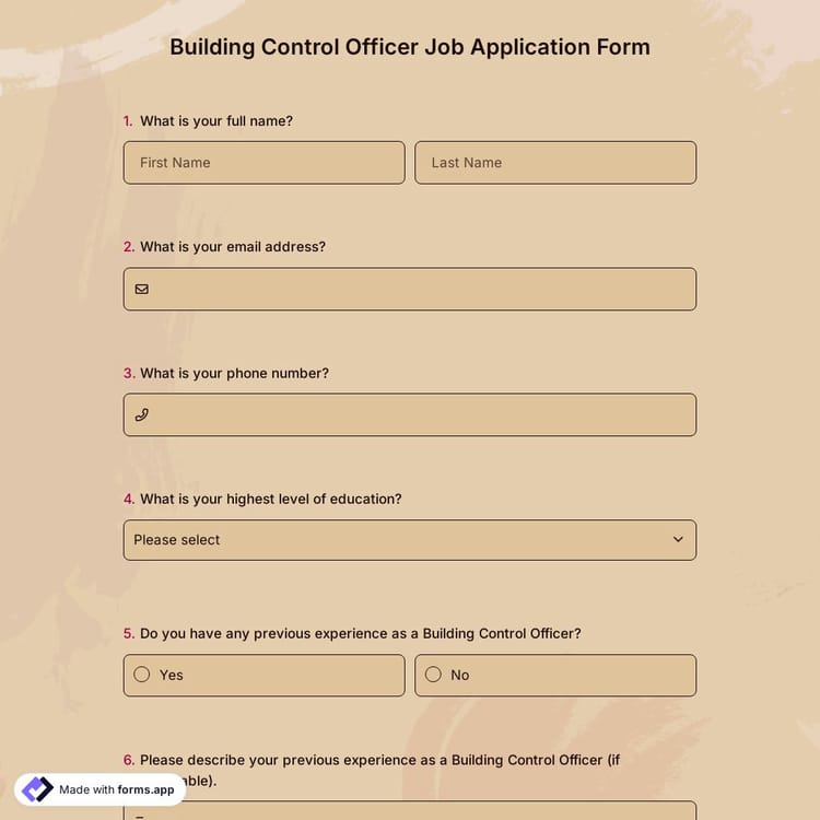 This building control officer job application form is free and customizable