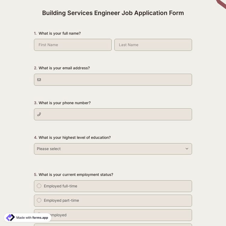 View this building services engineer job application form and click on "use template" after making sure this is what you are looking for.
