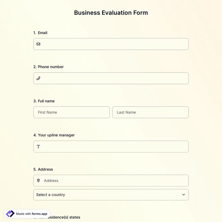 This form template is ideal for collecting information about your brand from your customers or employees. Use forms.app's business evaluation form template to find out what people think about your business. You can customize it to your needs and it's completely free.