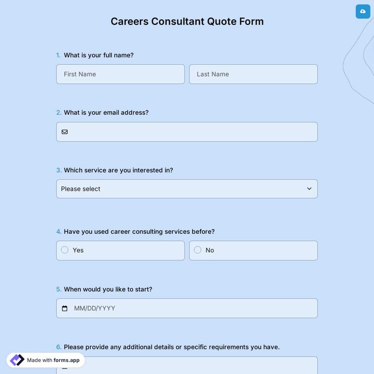 View this careers consultant quote form and click on "use template" after making sure this is what you are looking for.