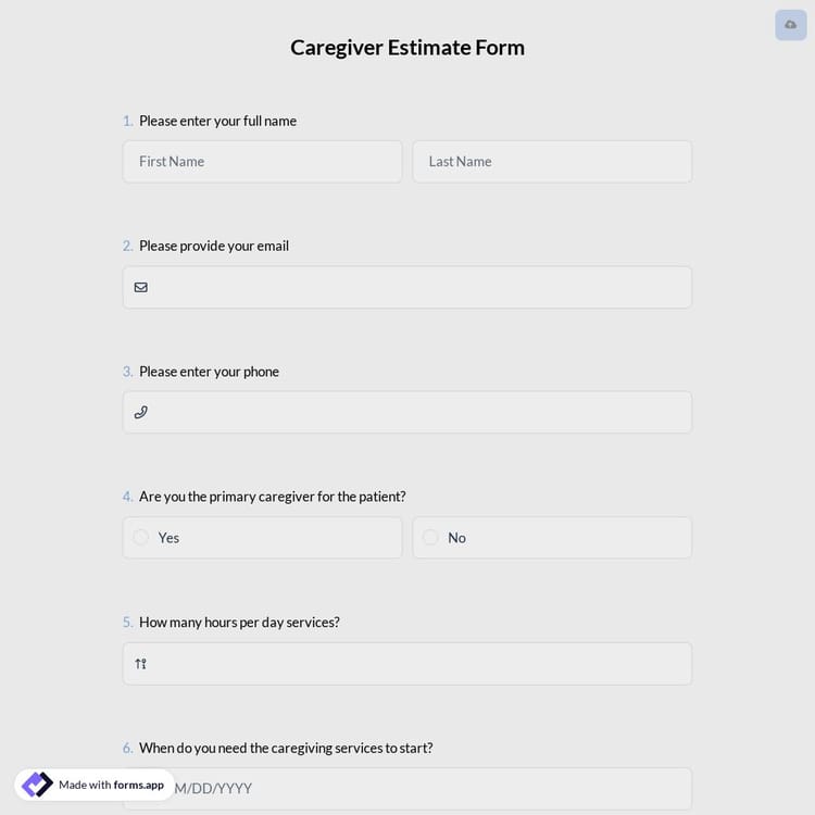 This caregiver estimate form is free and customizable