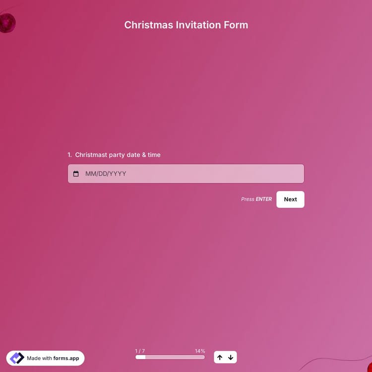 To create a Christmas invitation form with the perfect background and theme, look no further than forms.app! You can create and customize your form in less than a minute. Start building your form using the free Christmas invitation form template below!