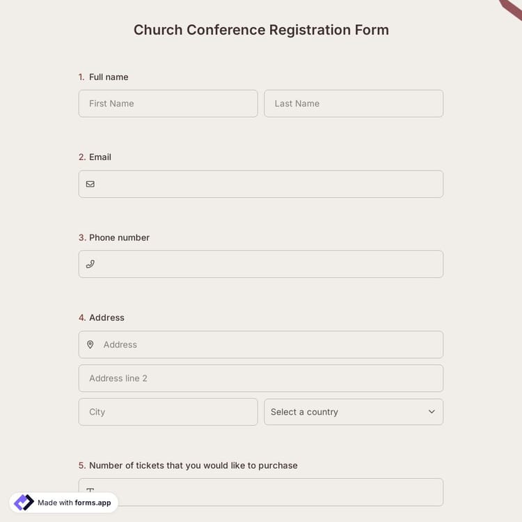 There are several ways you can customize your church conference registration form to meet the needs of your specific event with our free and simple online registration forms. However, bear in mind that these registration forms must consist of fundamental articles to gather information about who wishes to attend. Below, you can find some of the basic points that you can add to your template: