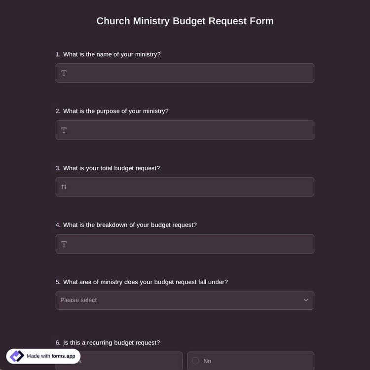 View this church ministry budget request form and click on "use template" after making sure this is what you are looking for.
