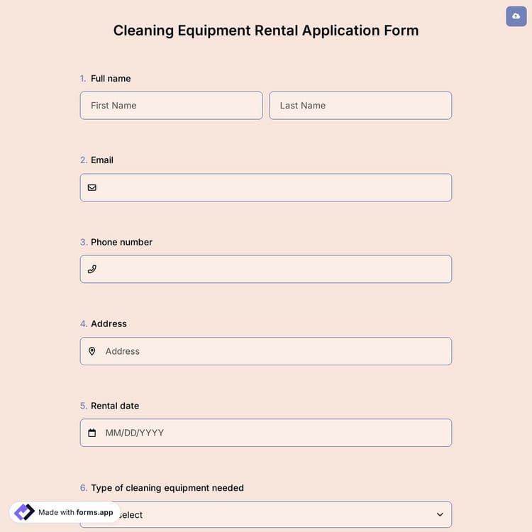 View this cleaning equipment rental application form and click on "use template" after making sure this is what you are looking for.