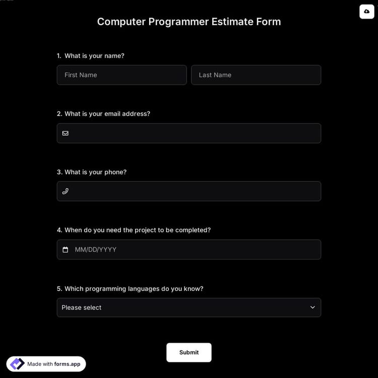 On forms.app, you can easily create an online form to automatically show a price estimate upon data entry.