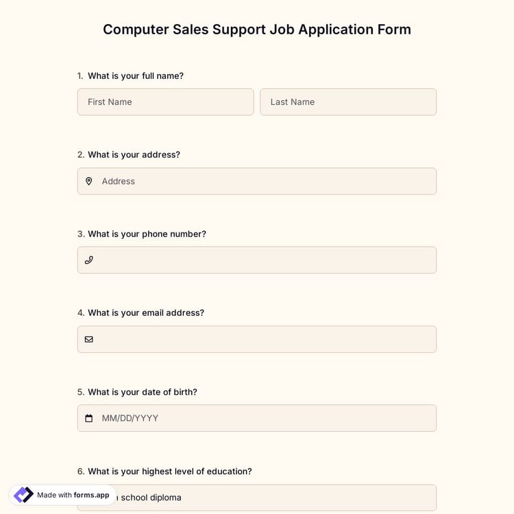 View this computer sales support job application form and click on "use template" after making sure this is what you are looking for.