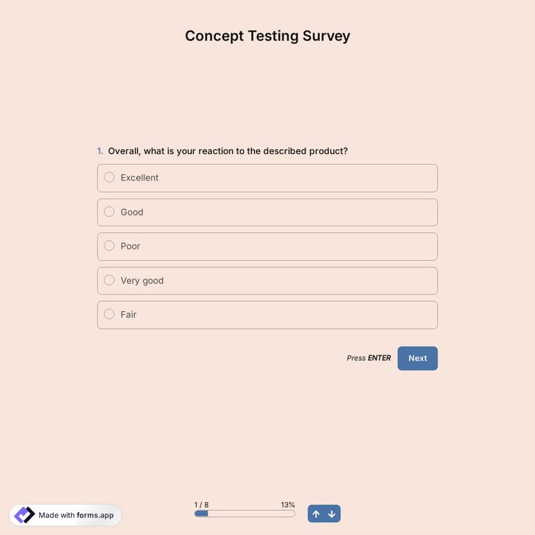A concept testing survey is a research tool that helps businesses assess the potential success of a new product or service. It is usually conducted before the product or service is fully developed and allows companies to gather feedback and make necessary adjustments to the concept before launch.