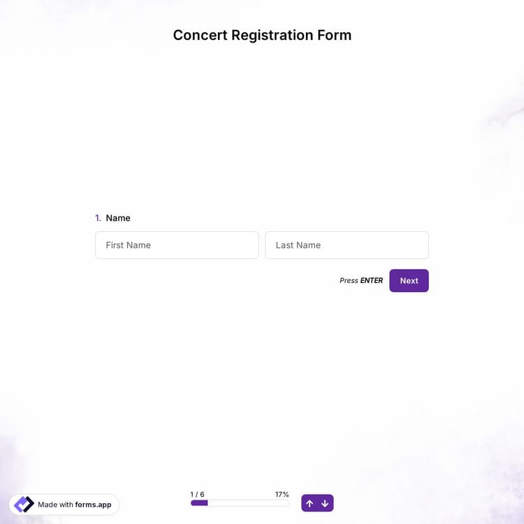 A concert registration form is a document that makes online registrations possible and helps you with collecting information and payments. Thanks to these forms, people won’t have to go to a ticket office and register for a concert online. No matter the concert type, forms.app’s concert registration form template will get you started quickly and effortlessly!