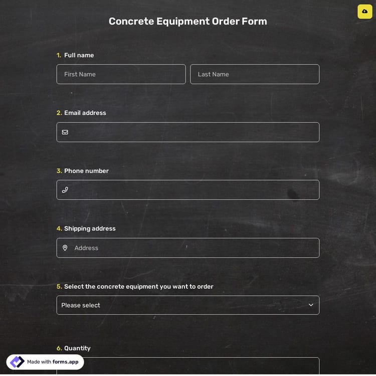View this concrete equipment order form and click on "use template" after making sure this is what you are looking for.