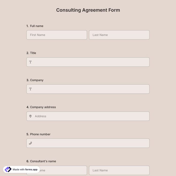 5 - Collect necessary personal information: After adding and explaining your terms, it is important to ask for personal or institutional information of your future consultee. You can do this by editing the field in this consulting agreement form sample or adding new questions.