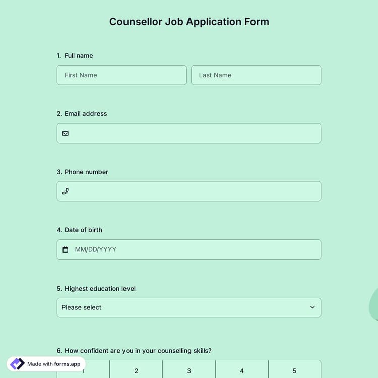 View this counsellor job application form and click on "use template" after making sure this is what you are looking for.