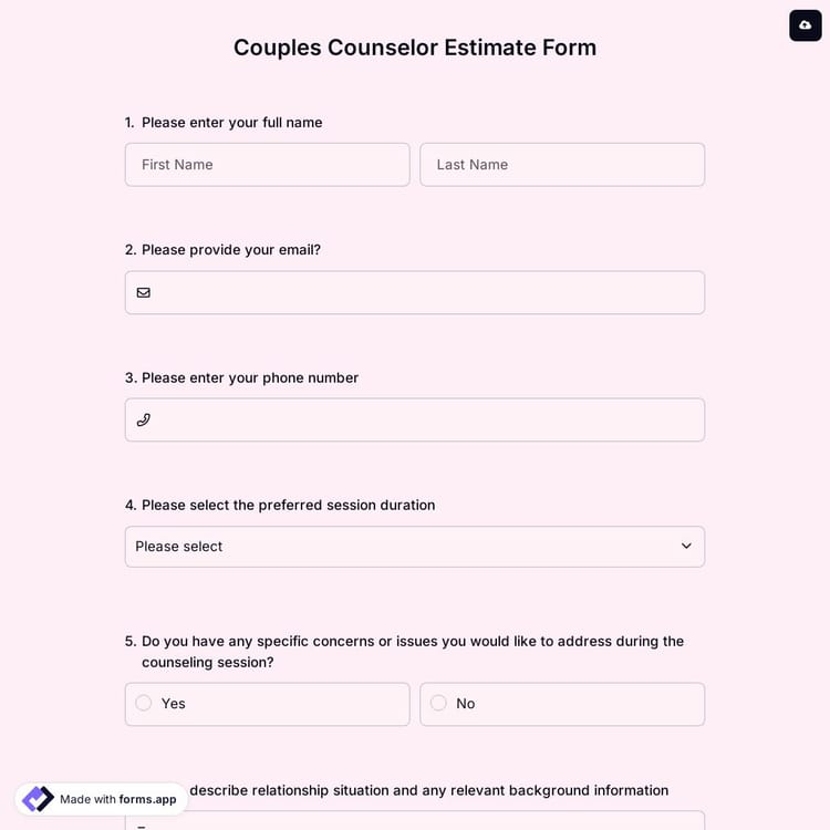 View this couples counselor estimate form and click on "use template" after making sure this is what you are looking for.