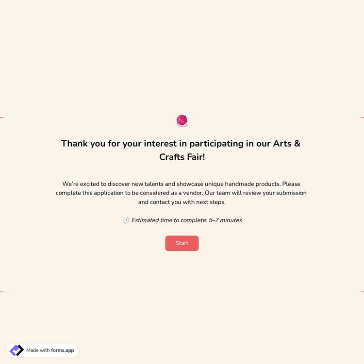 Simply tell us what vendor information you want to gather, and forms.app’s AI form generator will create a free application form template tailored to your craft show and vendor application process.