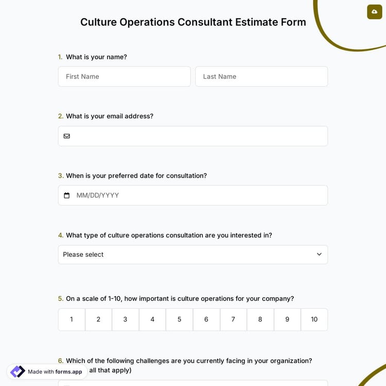 This culture operations consultant estimate form is free and customizable