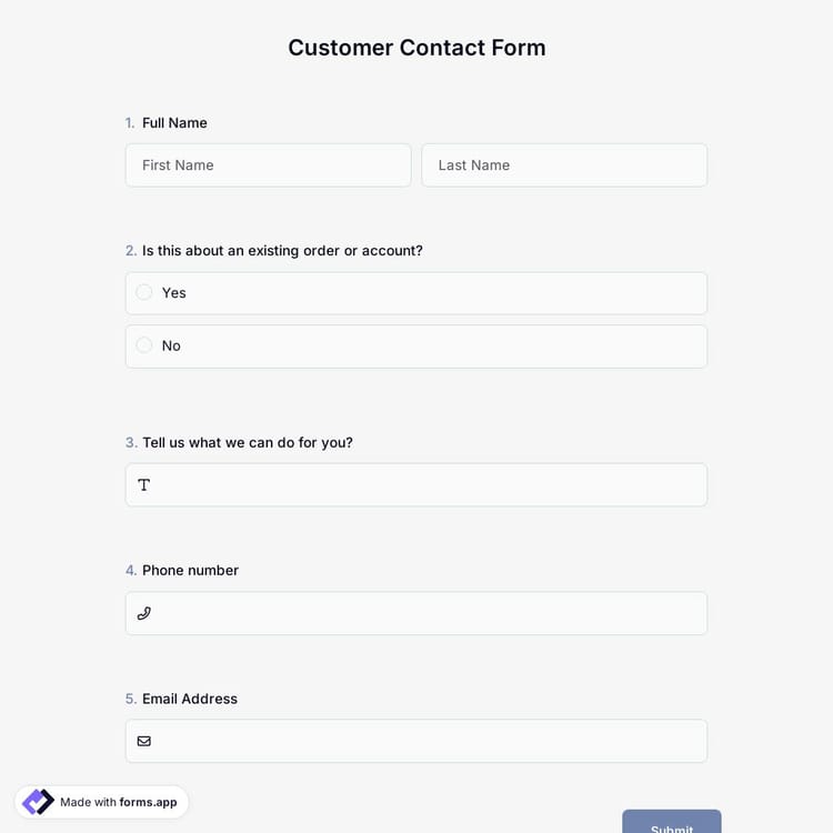 View this customer contact form template and click on "use template" after making sure this is what you are looking for.