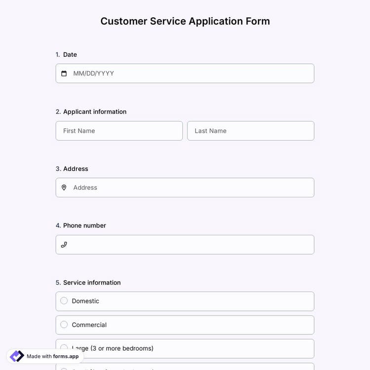 Are you looking for a suitable customer service application form for your business? Where can you find better than an online form that you edit and design yourself? Register on the professional form builder forms.app and use the customer service application form template for free!