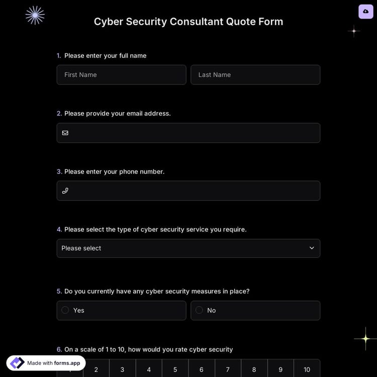 View this cyber security consultant quote form and click on "use template" after making sure this is what you are looking for.