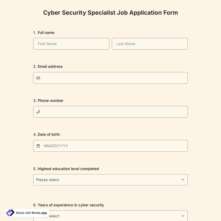 View this cyber security specialist job application form and click on "use template" after making sure this is what you are looking for.