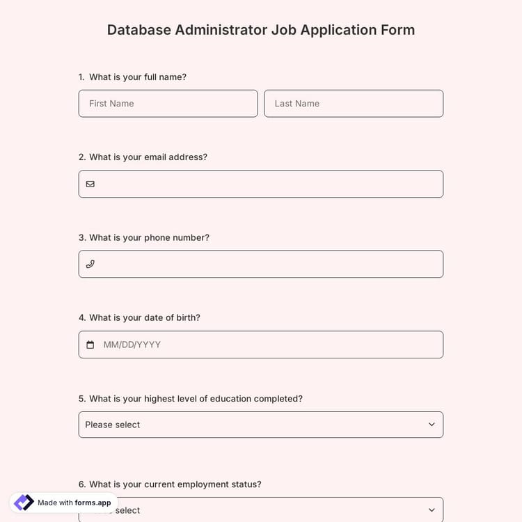 View this database administrator job application form and click on "use template" after making sure this is what you are looking for.