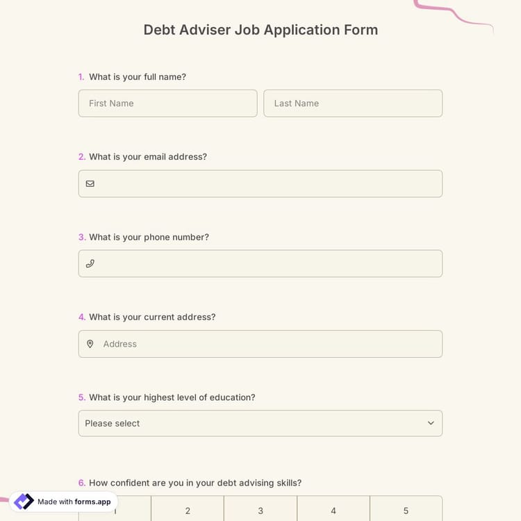 View this debt adviser job application form and click on "use template" after making sure this is what you are looking for.