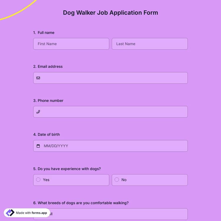 View this dog walker job application form and click on "use template" after making sure this is what you are looking for.