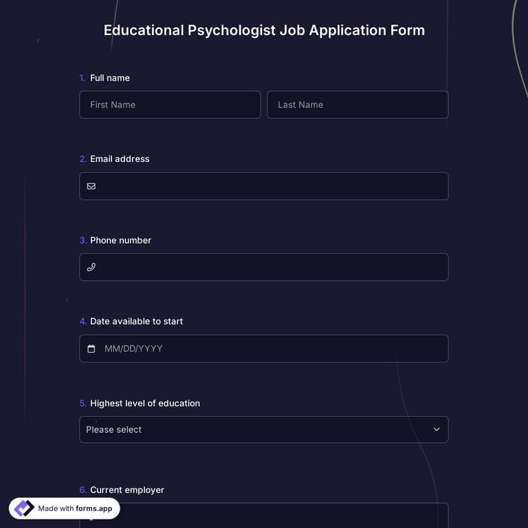 View this educational psychologist job application form and click on "use template" after making sure this is what you are looking for.