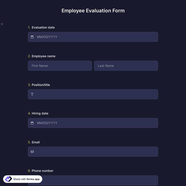 Employee evaluation forms can be useful tools for employers, as they provide a structured way to give feedback and assess employee performance. They can also help to identify areas where an employee needs improvement. However, it is important to use employee evaluation forms correctly; employers should ensure that employee evaluation forms are used in a fair and consistent manner. So, use this free employee evaluation form sample today and build your own form faster and easier.