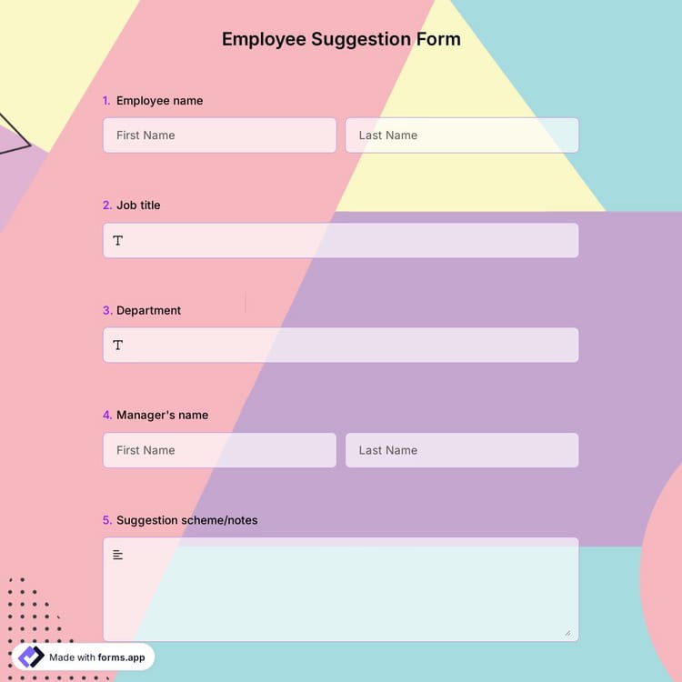 Do you want to receive suggestions and opinions from other companies about your potential employees? Creating an online form is the key if you need a great way to collect and analyze employee suggestions. forms.app is a free online form-making tool that offers you an employee suggestion form template! Get started today by using the template!