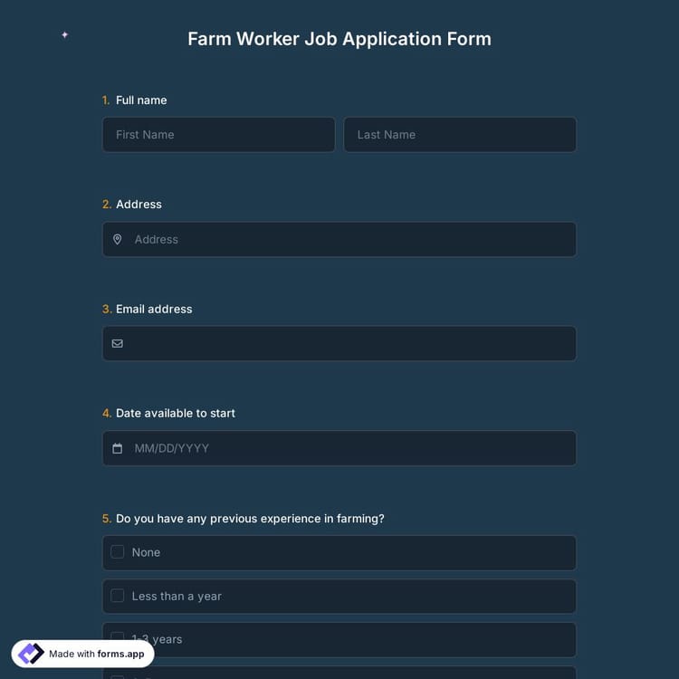 View this farm worker job application form and click on "use template" after making sure this is what you are looking for.