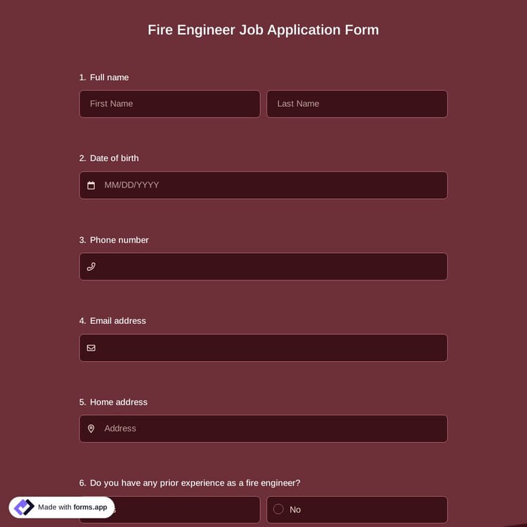 View this fire engineer job application form and click on "use template" after making sure this is what you are looking for.