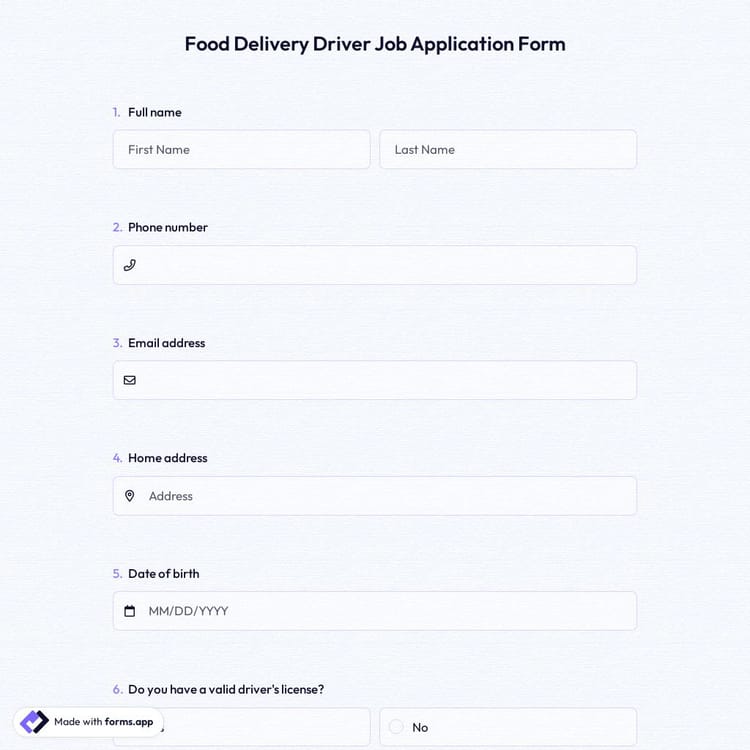 View this food delivery driver job application form and click on "use template" after making sure this is what you are looking for.