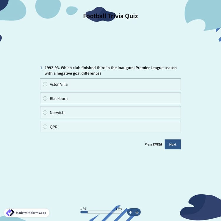You can make your football trivia better by using features of forms.app offers free. You can change your design and style, and you can make multiple selections, and picture selections, you can also use star rating for your questions as well. It is all about simple things in forms.app, don't wait start now!