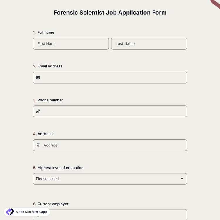 View this forensic scientist job application form and click on "use template" after making sure this is what you are looking for.