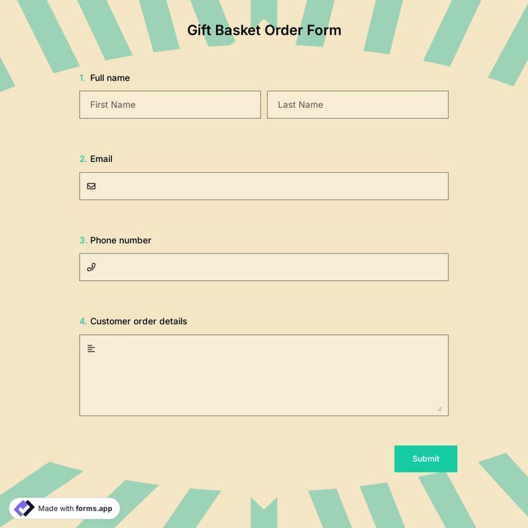 What is a gift basket order form? Do you think that you need one? forms.app got a template for you to make it easier. Learn how to craft a gift basket order form that will help boost your sales today!