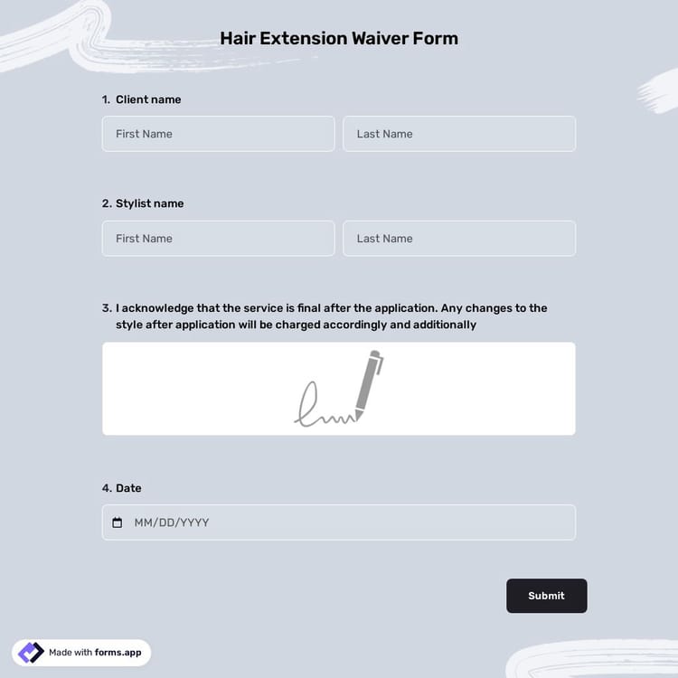 View this hair extension waiver form and click on "use template" after making sure this is what you are looking for.