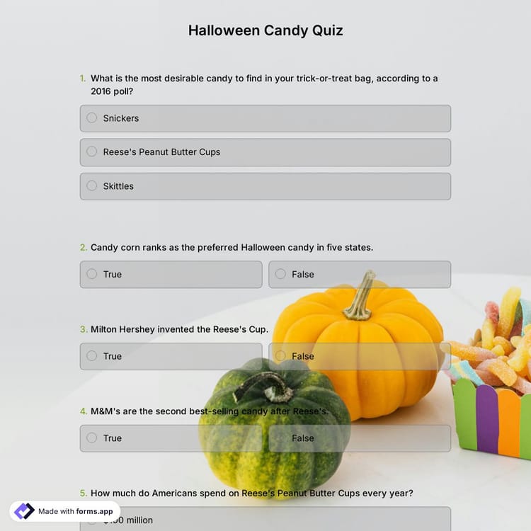 View this halloween candy quiz and click on "use template" after making sure this is what you are looking for.