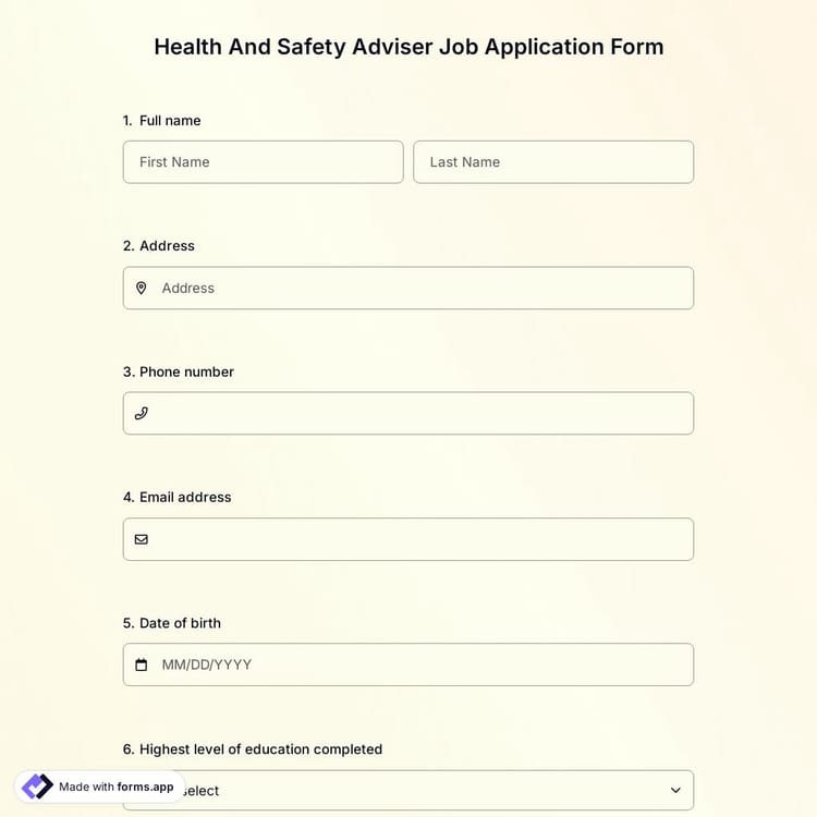 View this health and safety adviser job application form and click on "use template" after making sure this is what you are looking for.