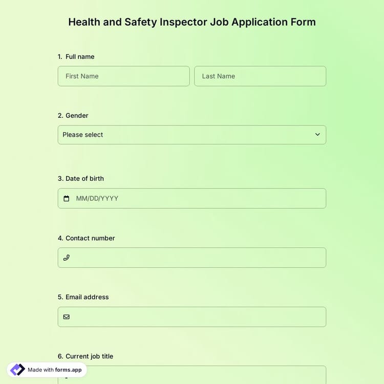 View this health and safety inspector job application form and click on "use template" after making sure this is what you are looking for.