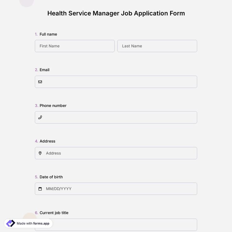 View this health service manager job application form and click on "use template" after making sure this is what you are looking for.