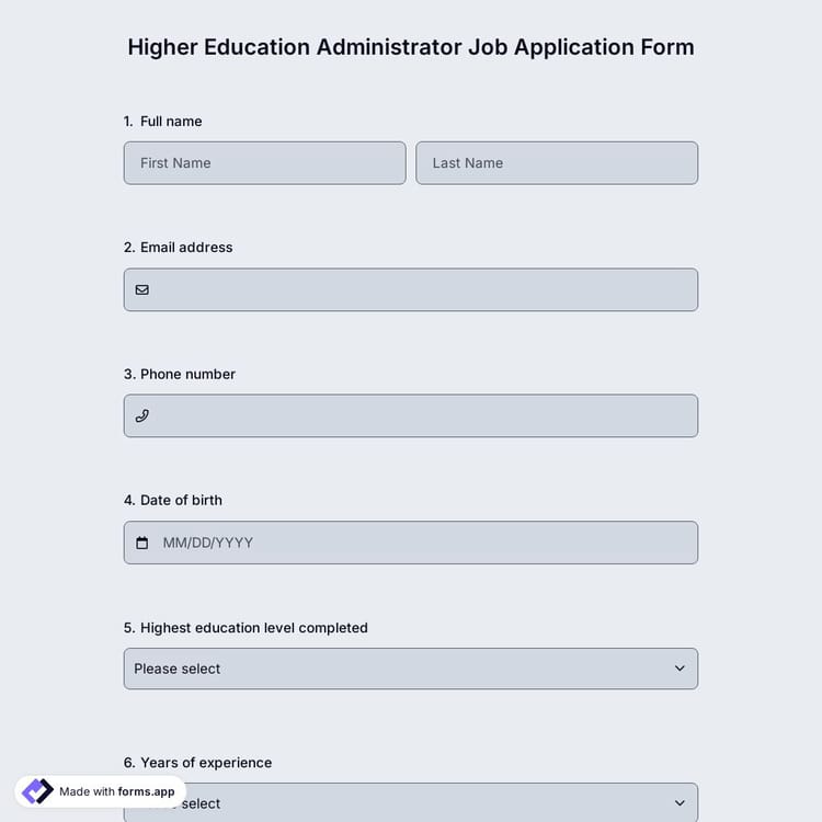 View this higher education administrator job application form and click on "use template" after making sure this is what you are looking for.