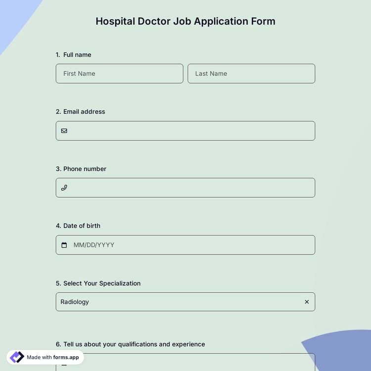 View this hospital doctor job application form and click on "use template" after making sure this is what you are looking for.