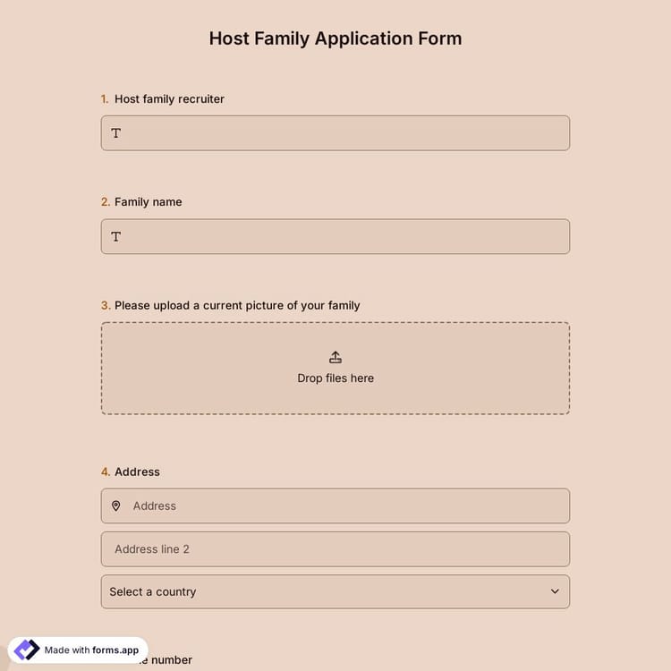 Are you looking for a host family application form template you can use as a base to create a perfect form? You don’t need to look anywhere other than the free form-making tool forms.app! Get started right now by clicking on “use template” below!