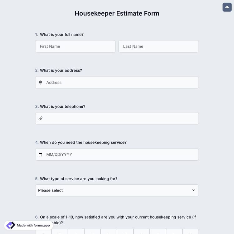 View this housekeeper estimate form and click on "use template" after making sure this is what you are looking for.