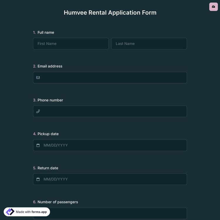 View this humvee rental application form and click on "use template" after making sure this is what you are looking for.