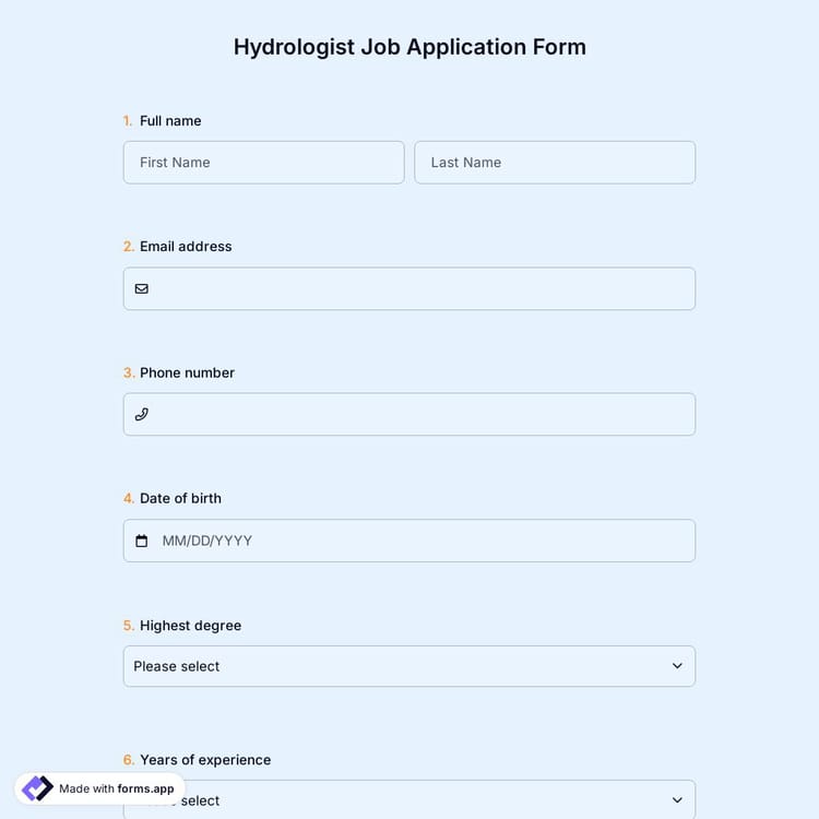 View this hydrologist job application form and click on "use template" after making sure this is what you are looking for.