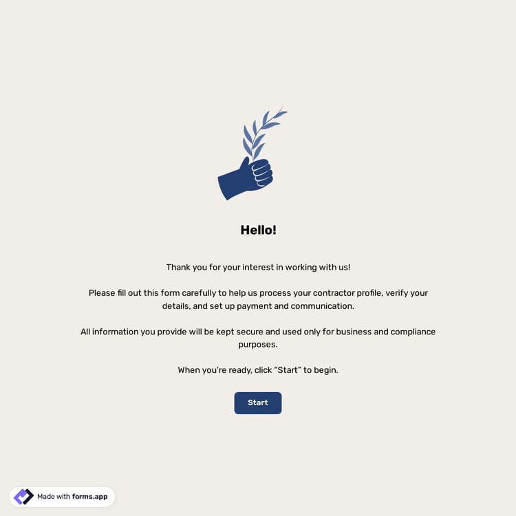 Asking the right questions in an online independent contractor form is the key point. If you want to see some examples, here are some for you to inspire: